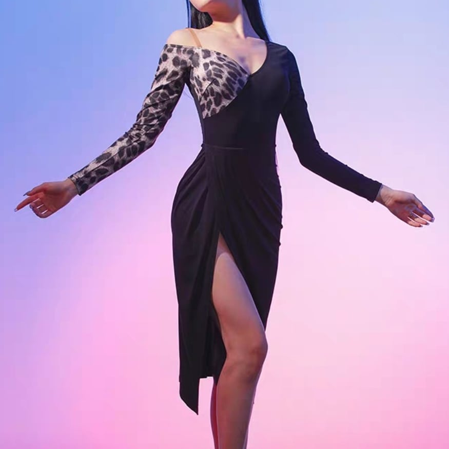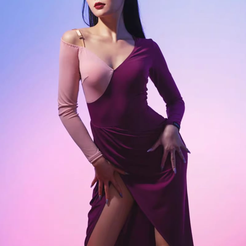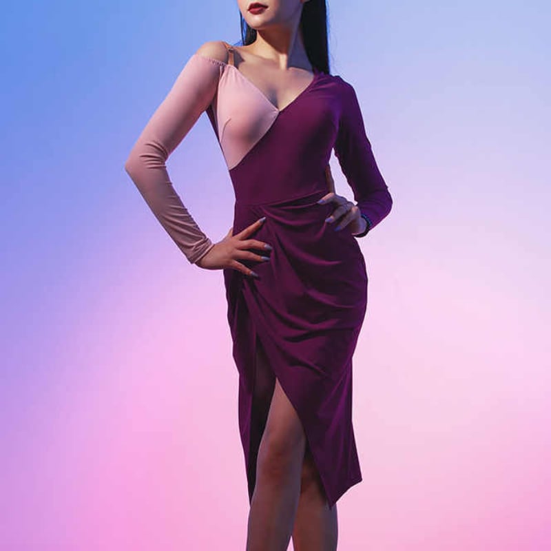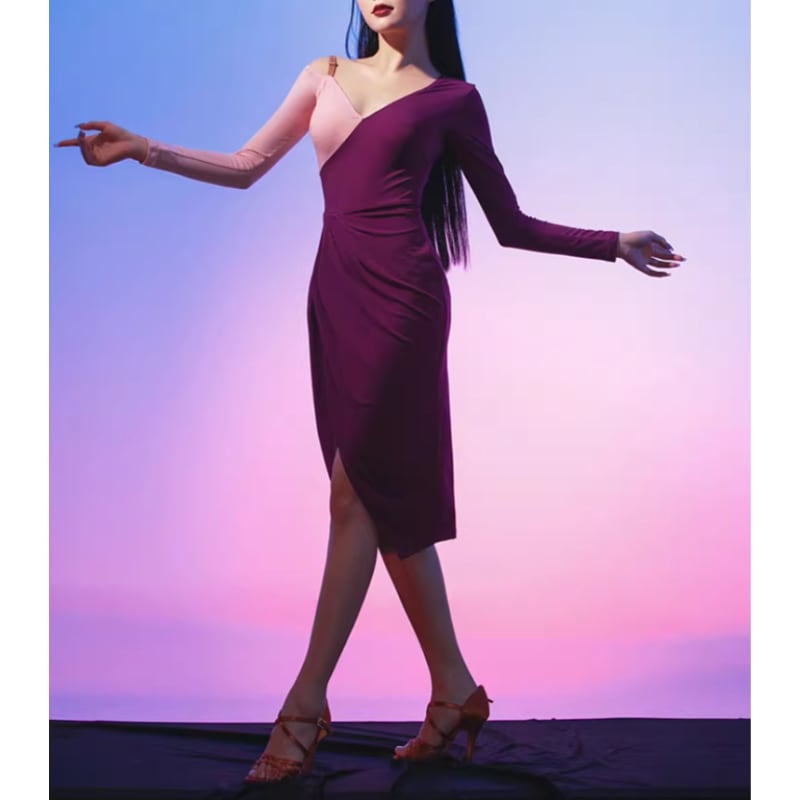 アシンメトリー バイカラー スリット ラテンドレス 1col D00509