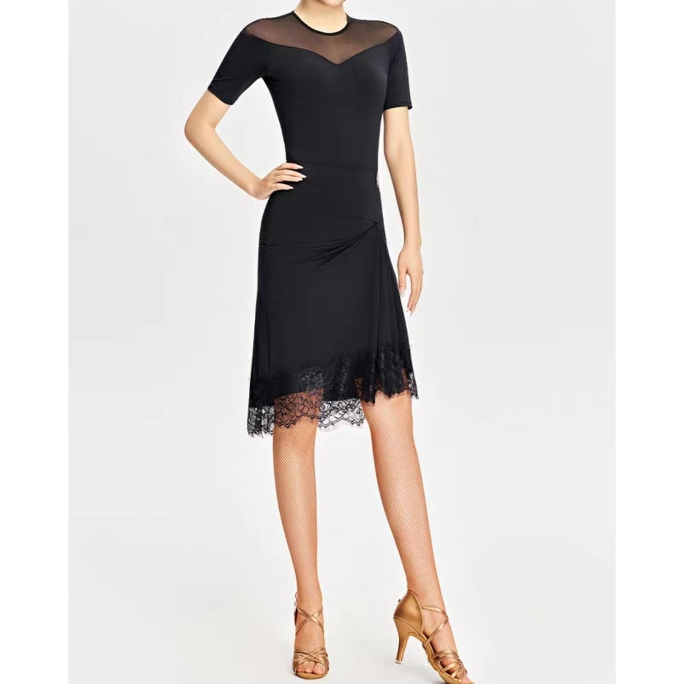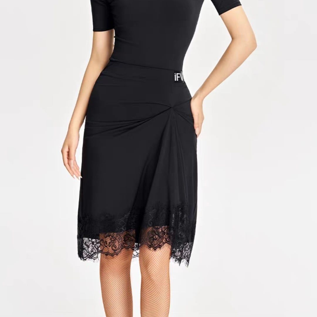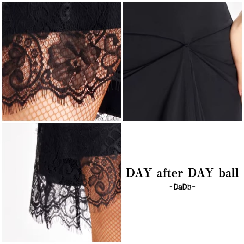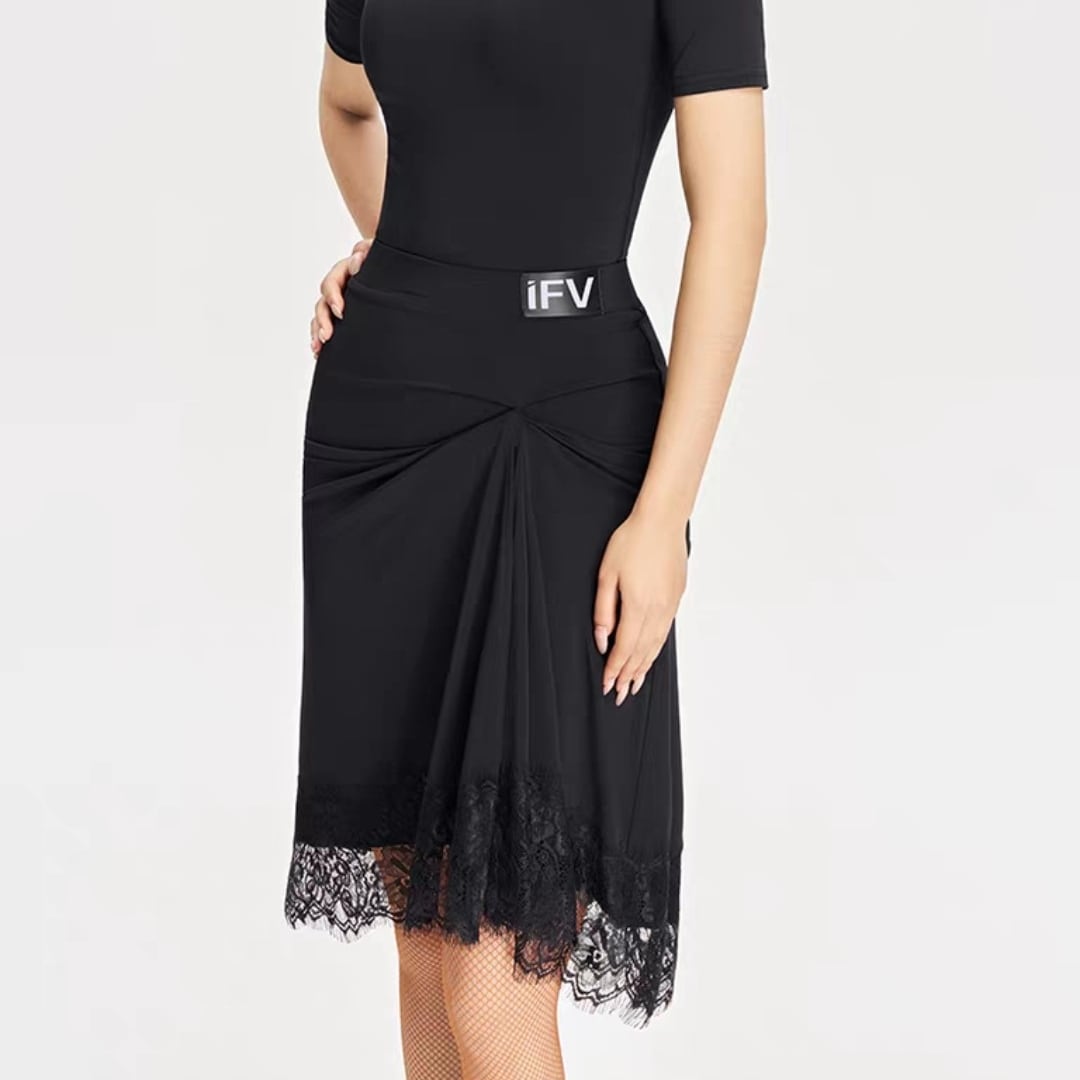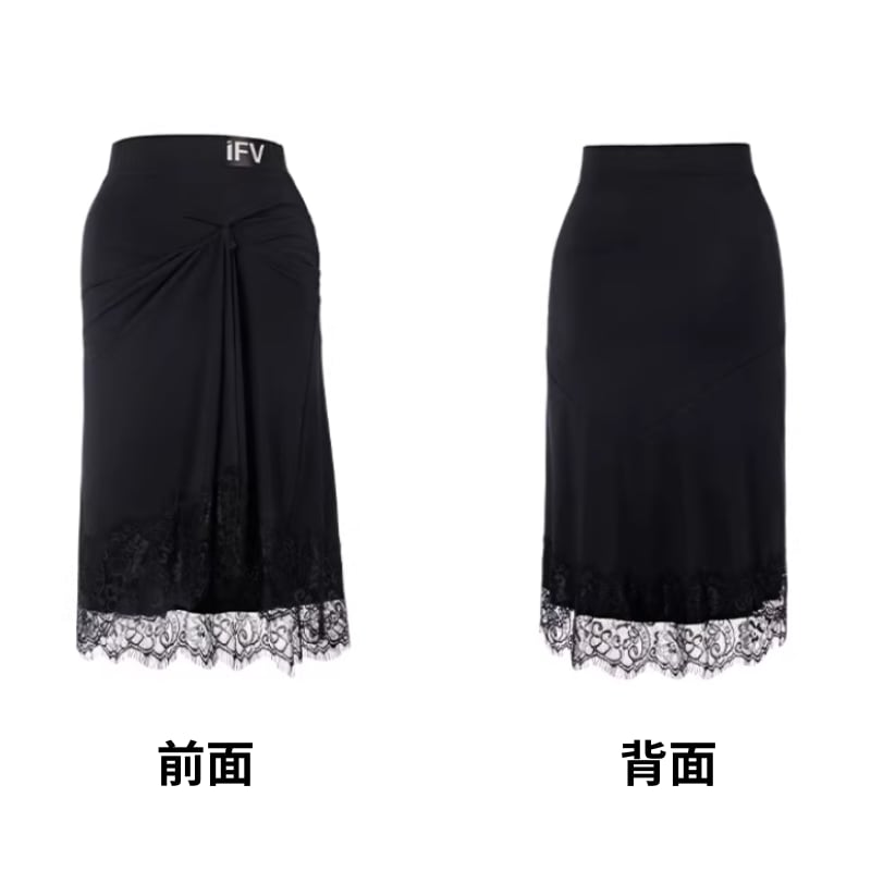 ブラックレース アシンメトリー ギャザー ラテンスカート 1col D00511