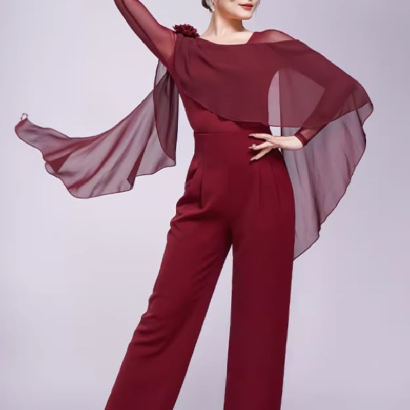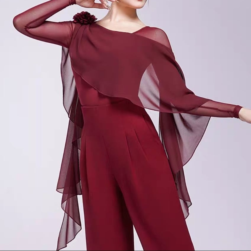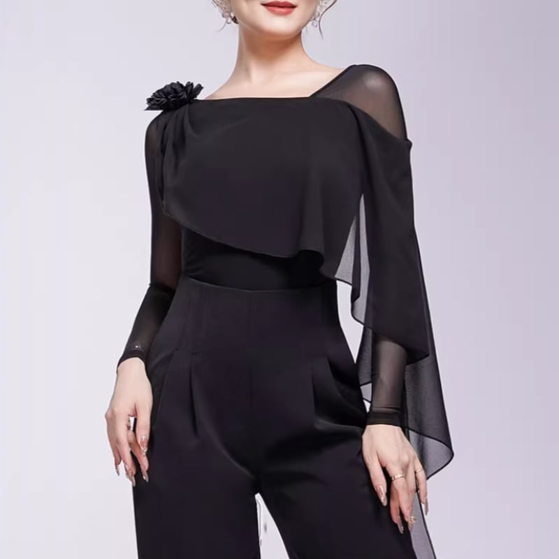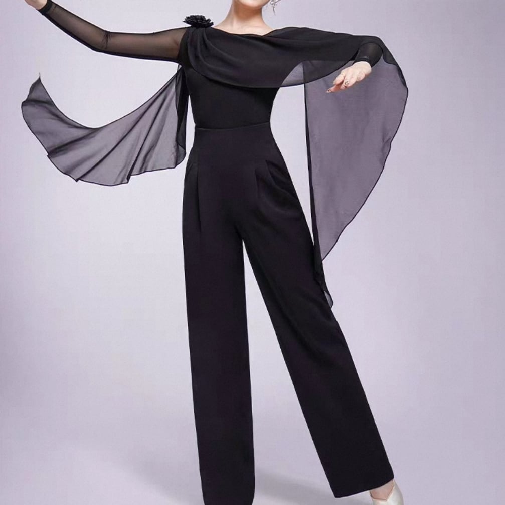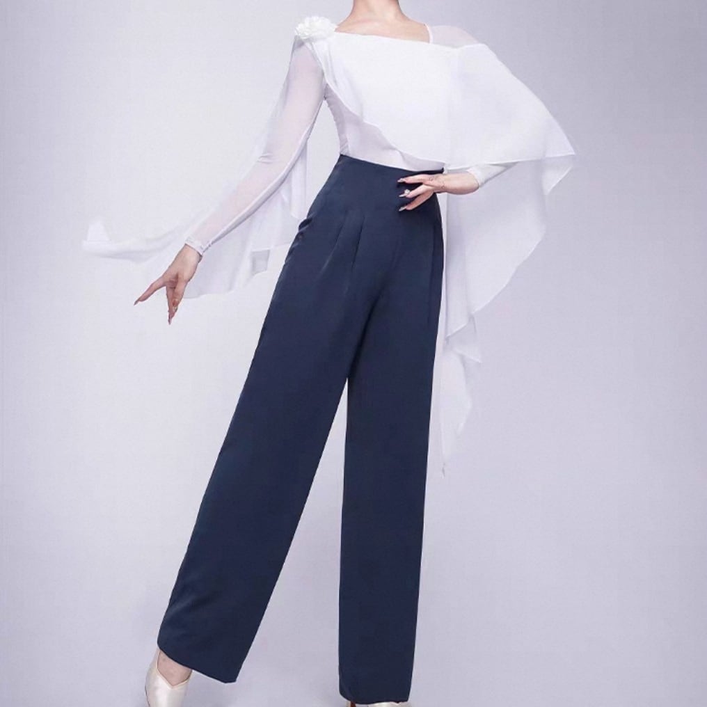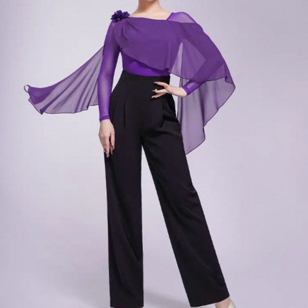 翼のように広がるシフォン袖が、腕の動きを優雅に見せるダンストップス。