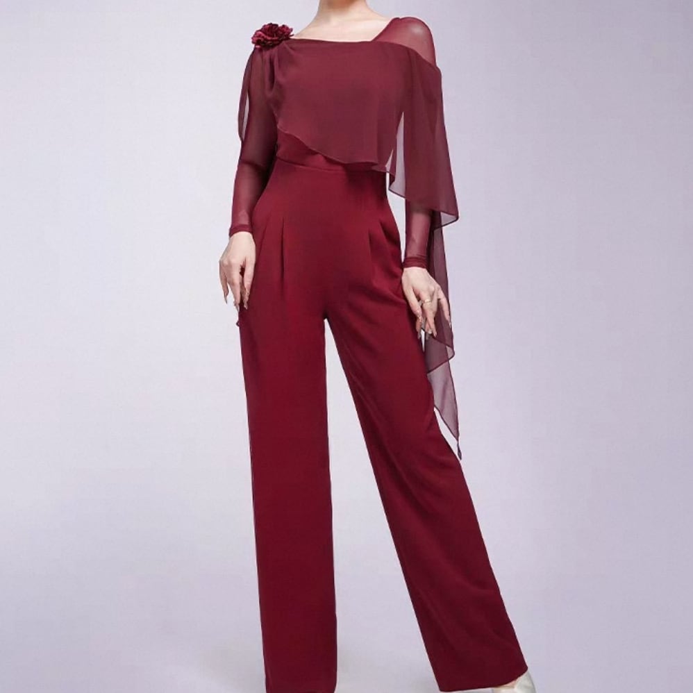 顔周りを彩るフラワーモチーフが華やかさを添え、女性らしさアップに最適な一着です。