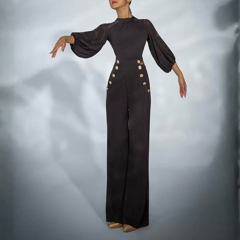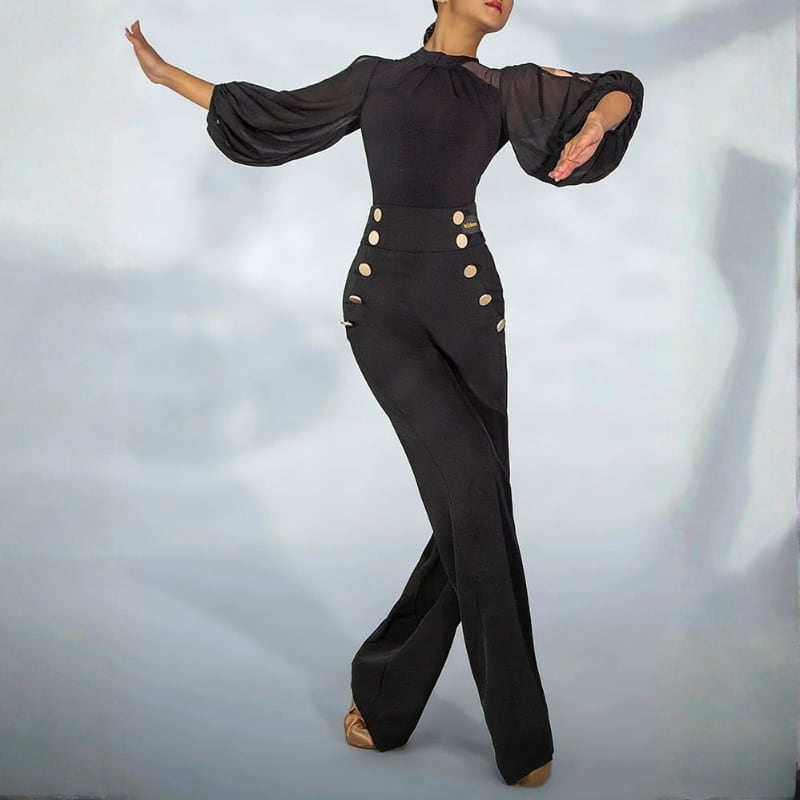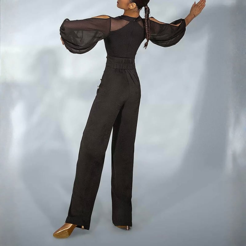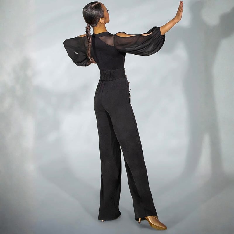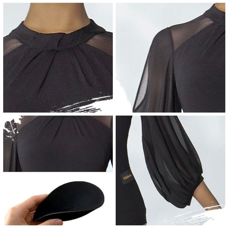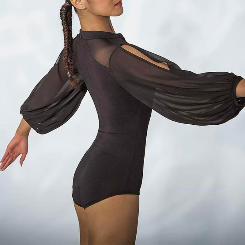 シアーな袖が目を引くエレガントなレオタードトップス。