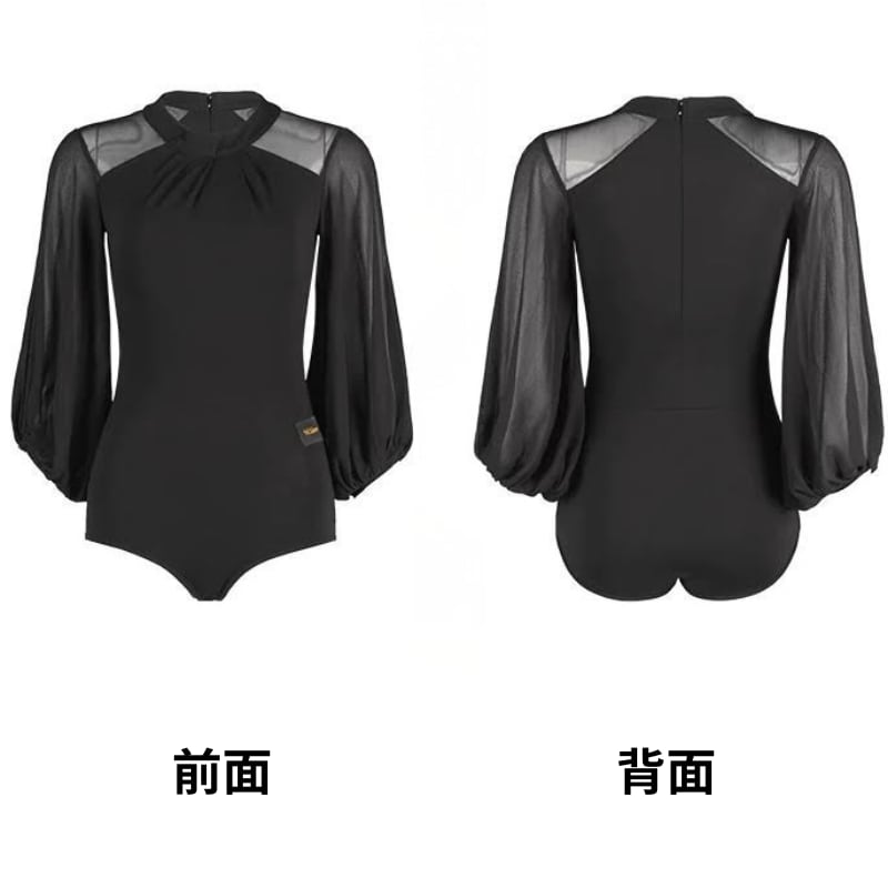 シアー ボリュームスリーブ レオタード トップス 1col D00539
