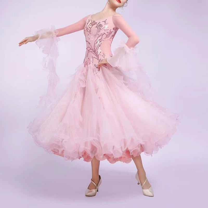 何層にも重なったボリュームたっぷりのチュールスカートが、フロアを舞うたびに美しく広がります。