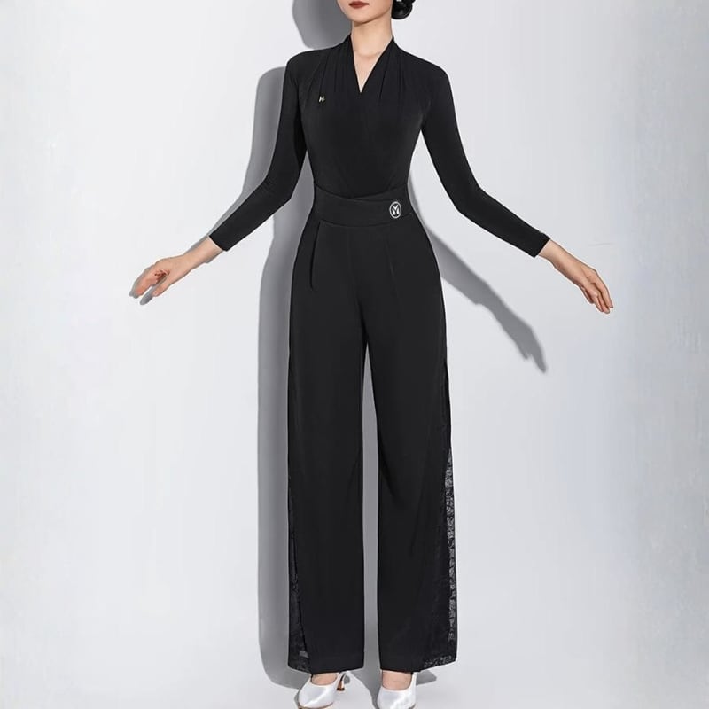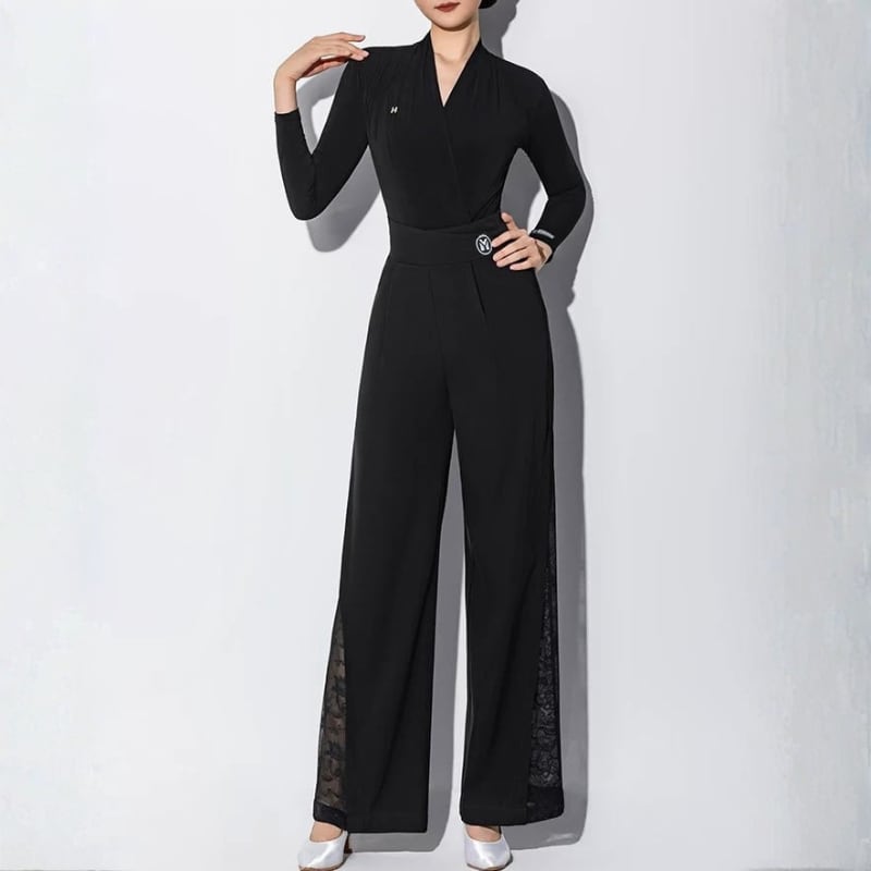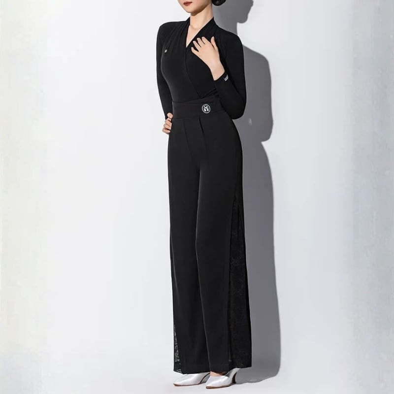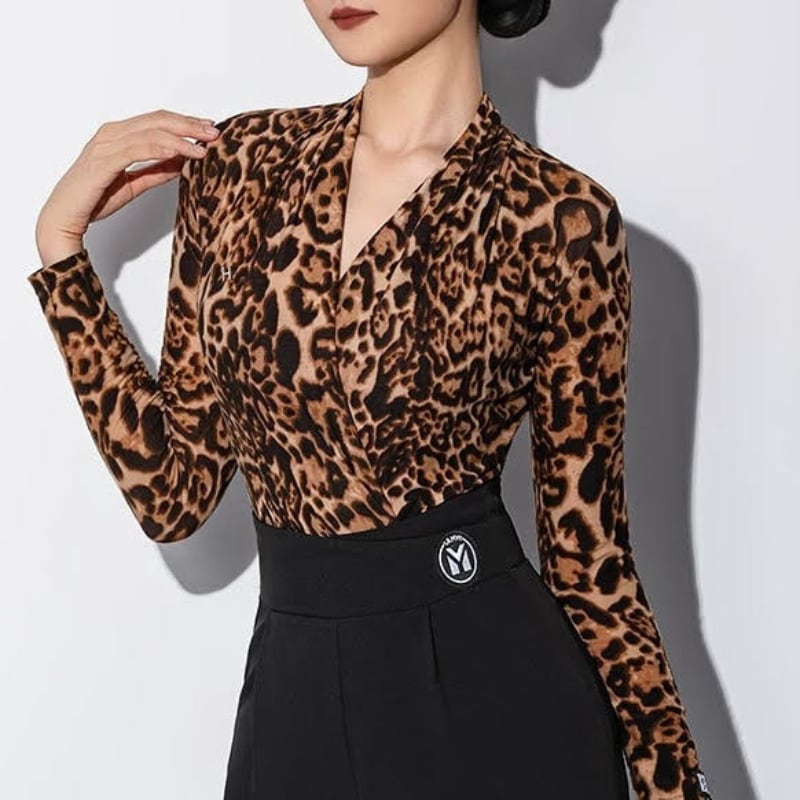 顔周りをシャープに見せるカシュクールが、知的な色気を漂わせるレオタードタイプのトップス。