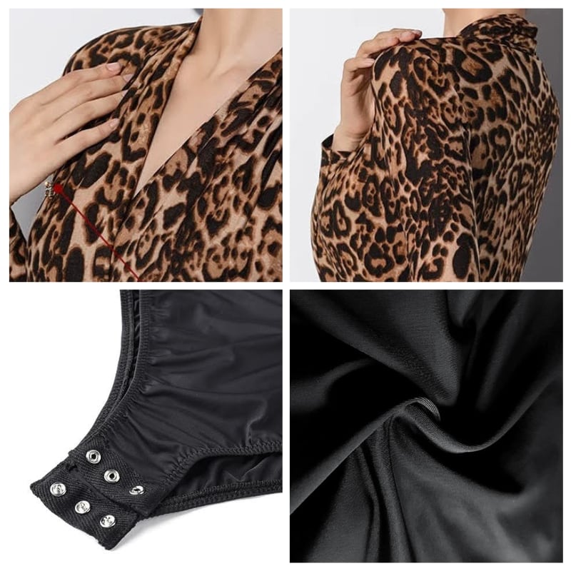 カシュクールデザイン ロングスリーブ タイト トップス レオタード 3col D00549