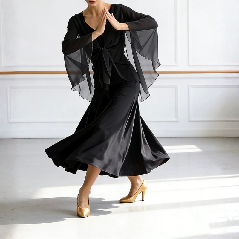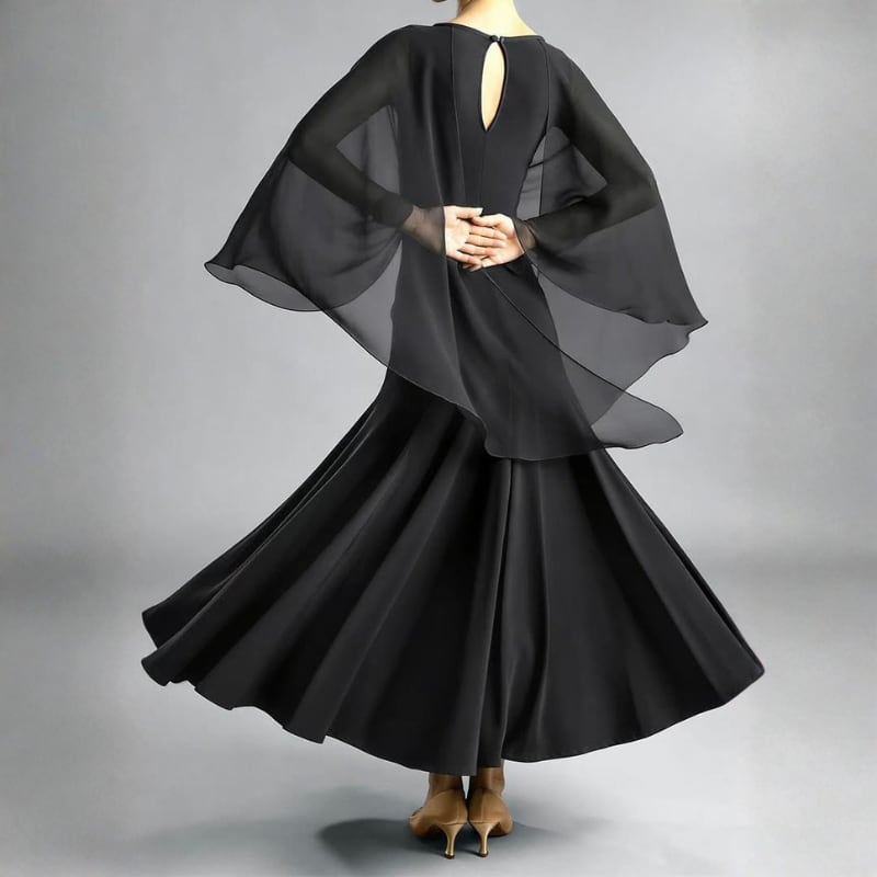 風をまとうようなシアースリーブが、踊るたびに翼のように広がるエレガントなドレス。