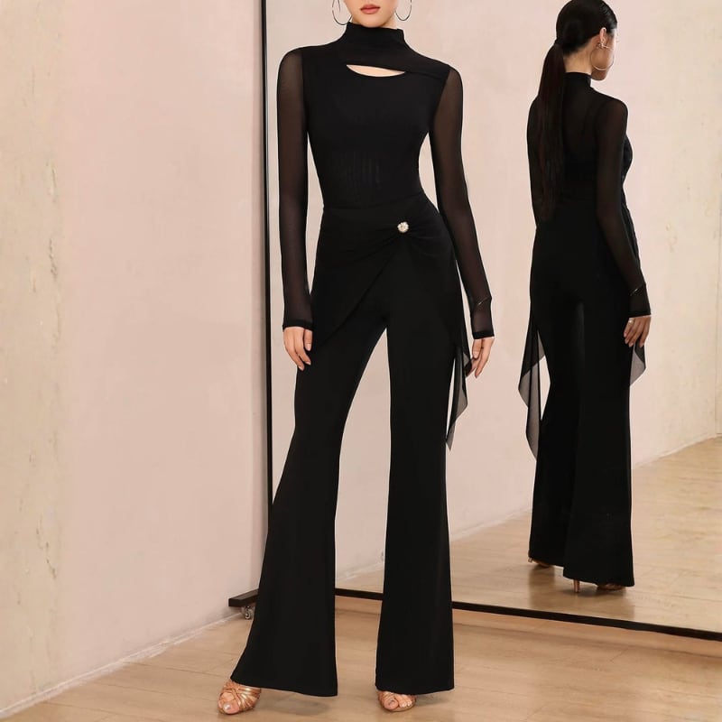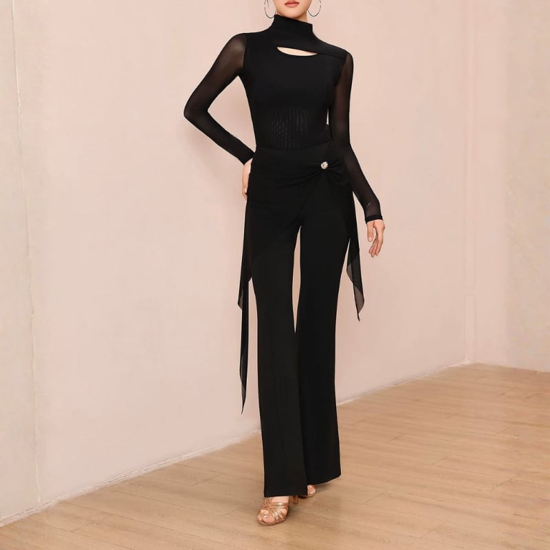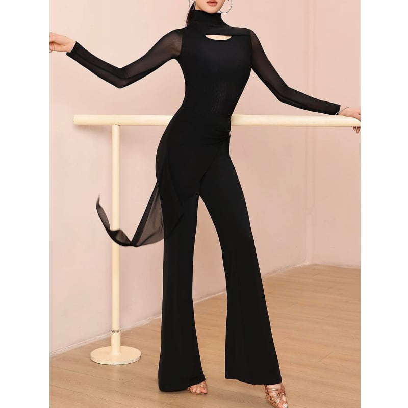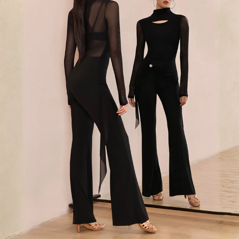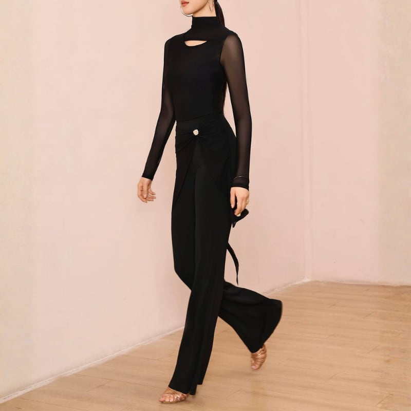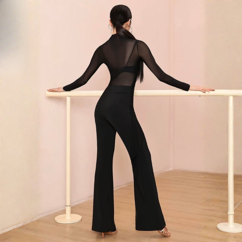 ハイウエスト サイドメッシュ フレア ダンスパンツ 1col D00563