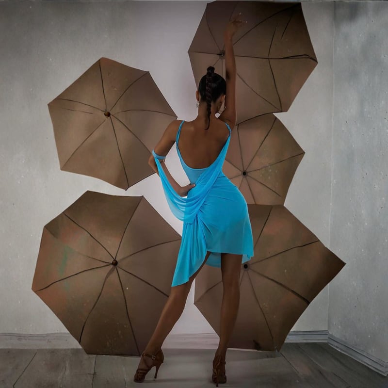 透け感のある軽やかな素材は、ターンやステップのたびにドラマティックな余韻を演出。