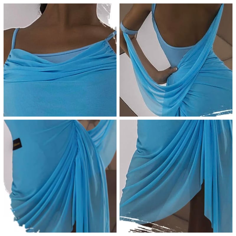 カウルネック アシンメトリー ドレープ ラテンドレス 2col D00567