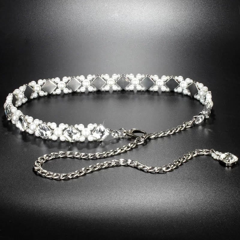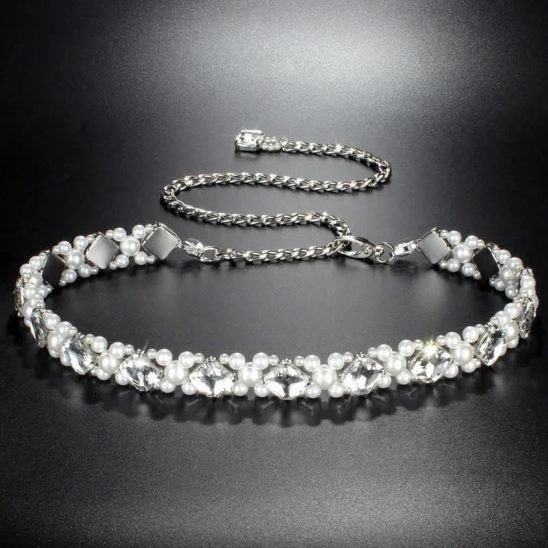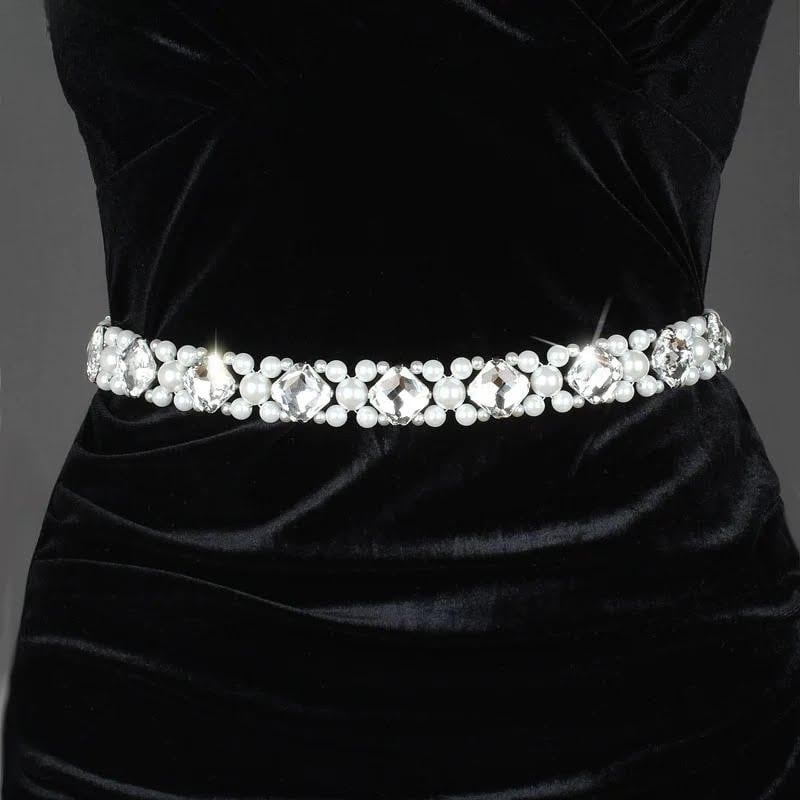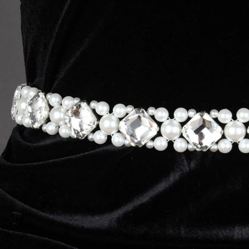 大粒のクリスタルとパールを贅沢に配した、煌びやかなダンス用ベルト。