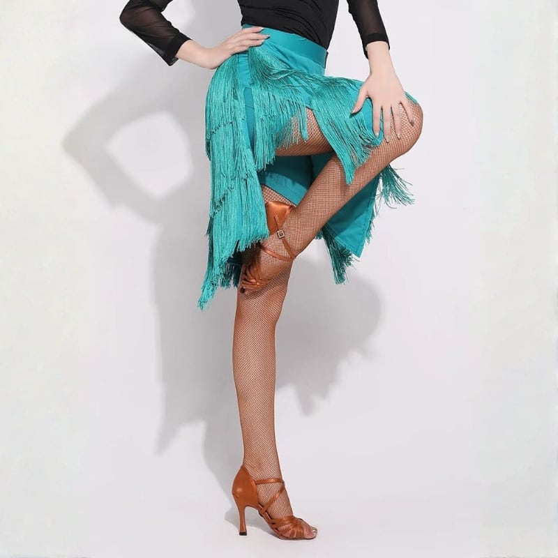 鮮やかなカラーが目を引く、多層フリンジを贅沢にあしらったラテンスカート。