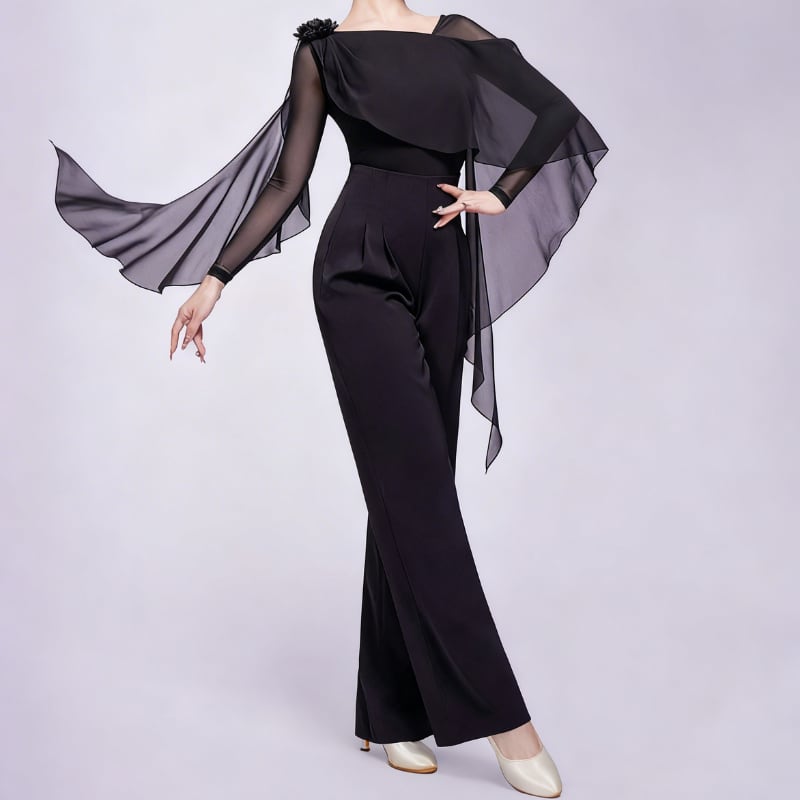 ▼ハイウエスト サイドメッシュ フレア ダンスパンツ D00563