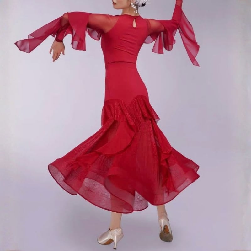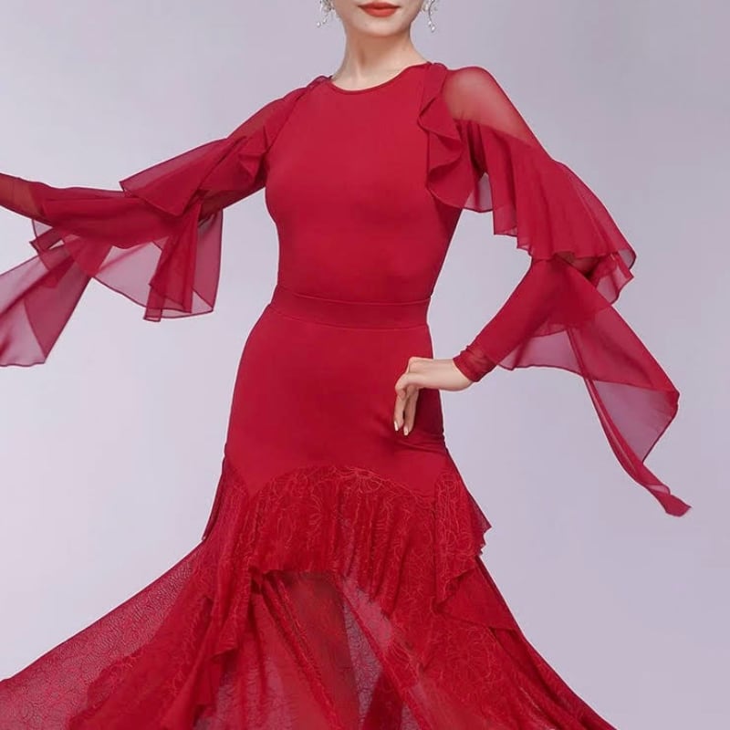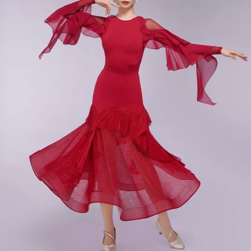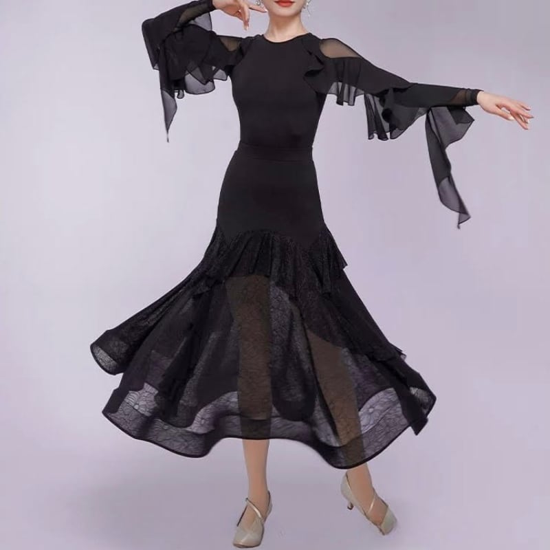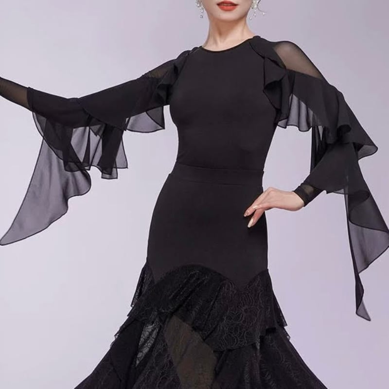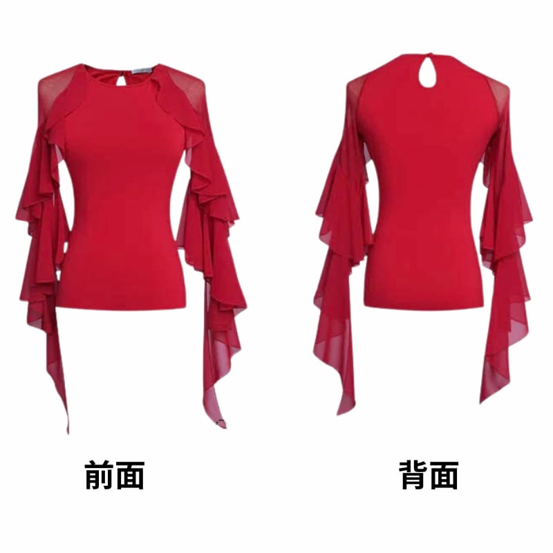 シアー フリルスリーブ ダンス トップス 2col D00601