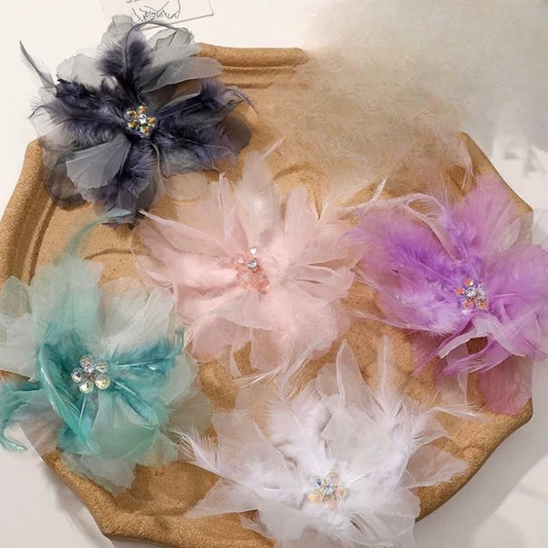 フェザーデザイン カラー ヘアコサージュ 5col D00602