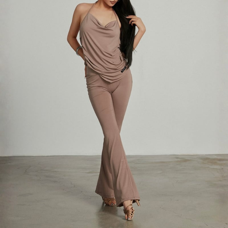 トップスの柔らかな動きと、脚長効果抜群のフレアパンツが、あなたのダンスパフォーマンスをよりドラマチックに、そしてスタイル良く見せてくれるでしょう。
