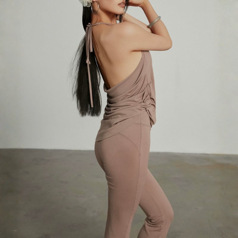 ホローネックドレープ カットアウト キャミソール フレアパンツ SET 2col D00595