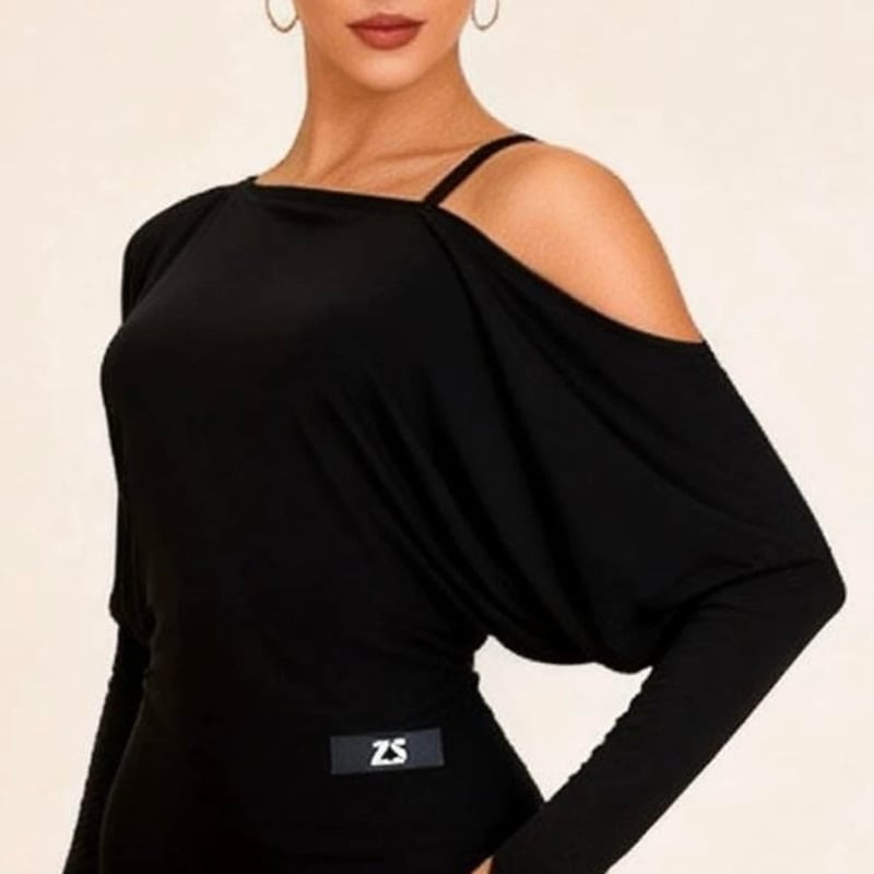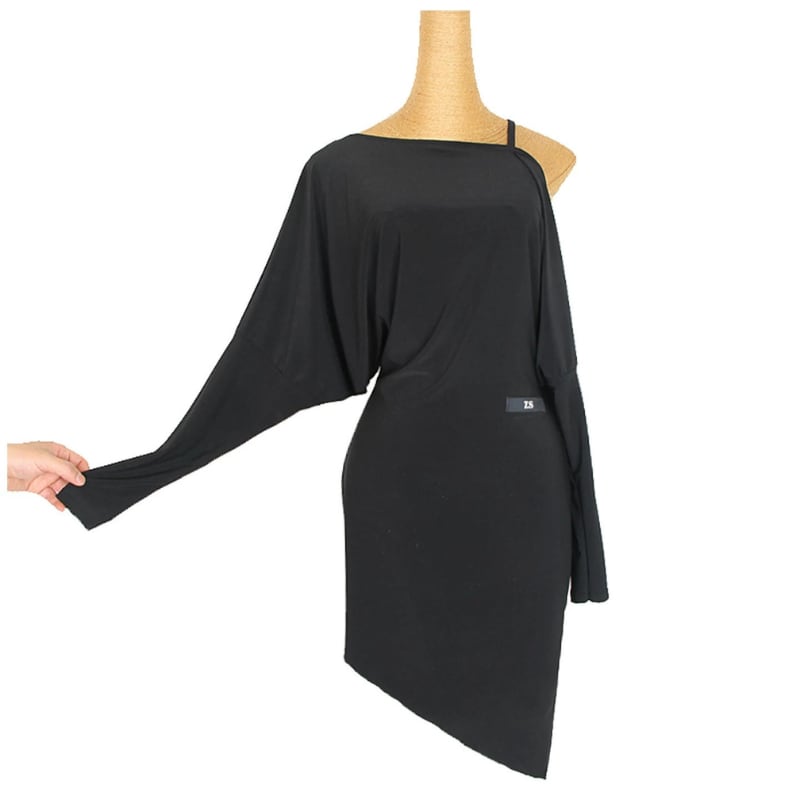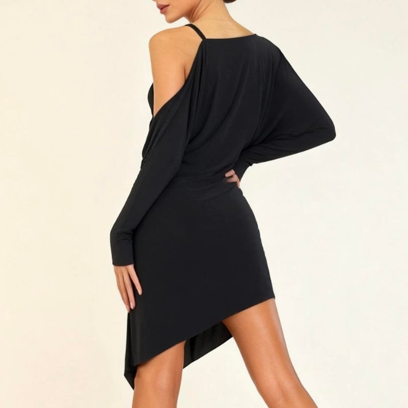大胆なアシンメトリーデザインと、肩のカットアウトが洗練された大人の色気を演出するラテンドレス。