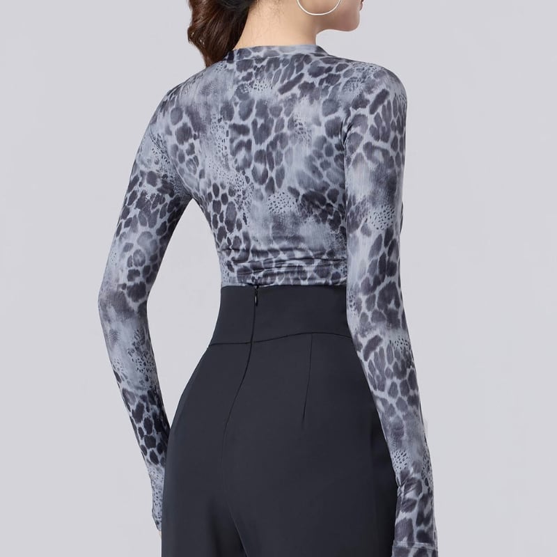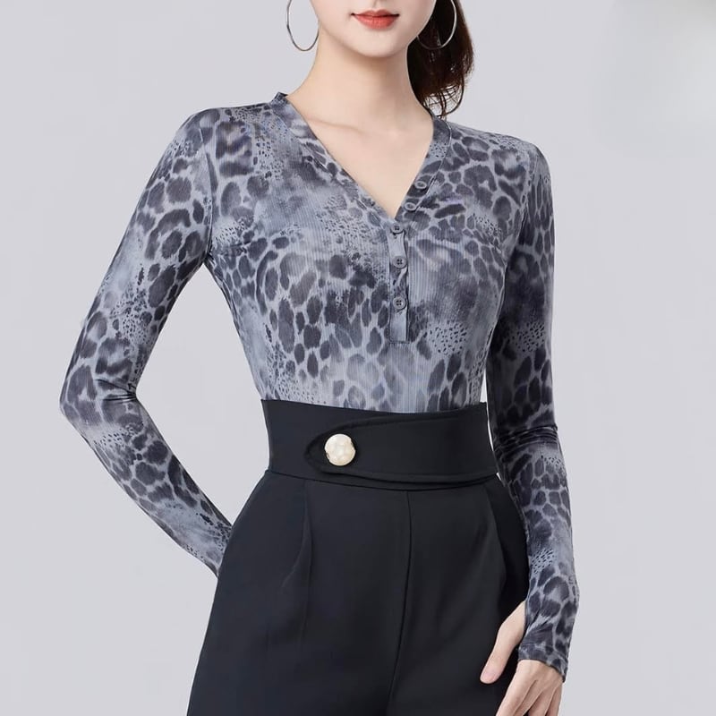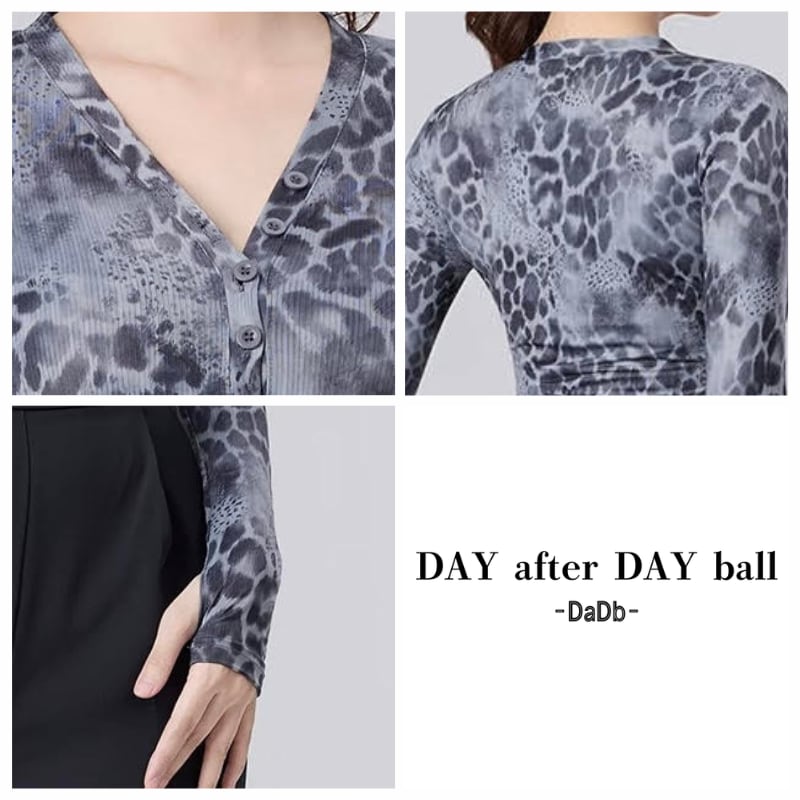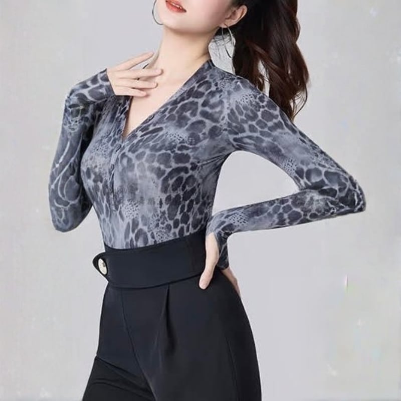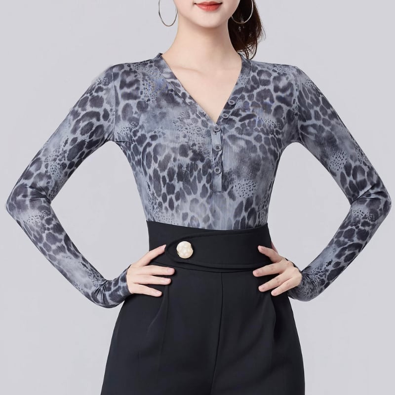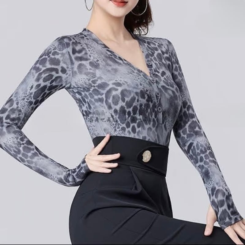 Vネック グレー レオパード ダンス トップス 1col D00616