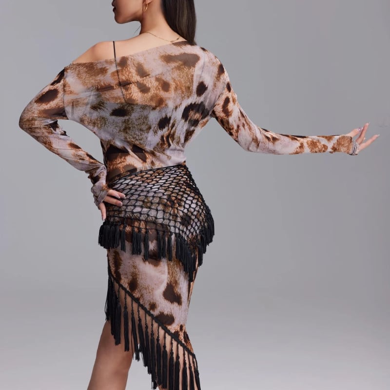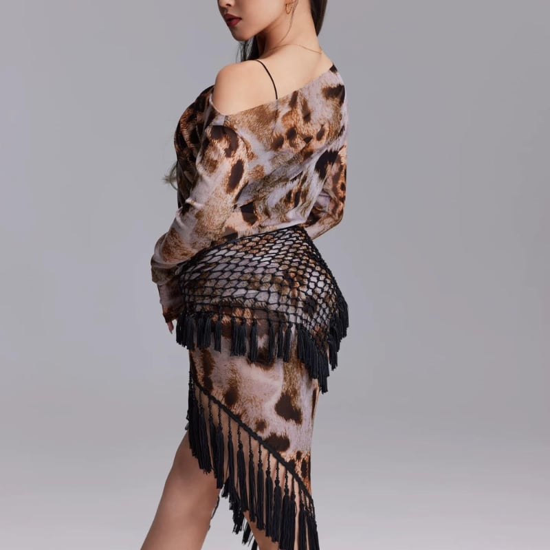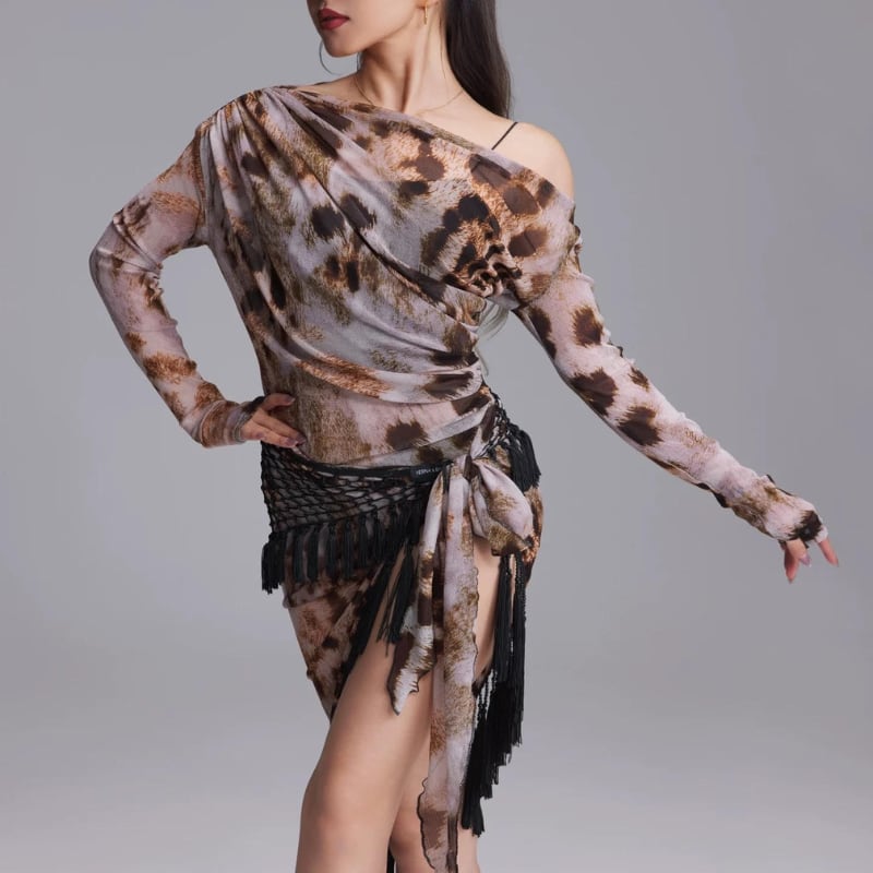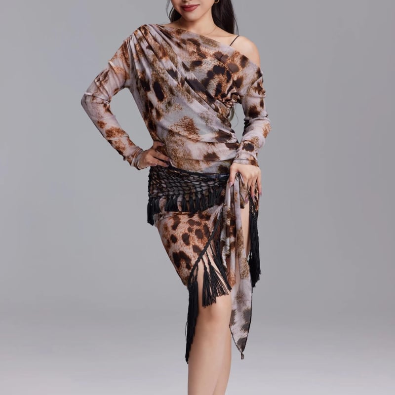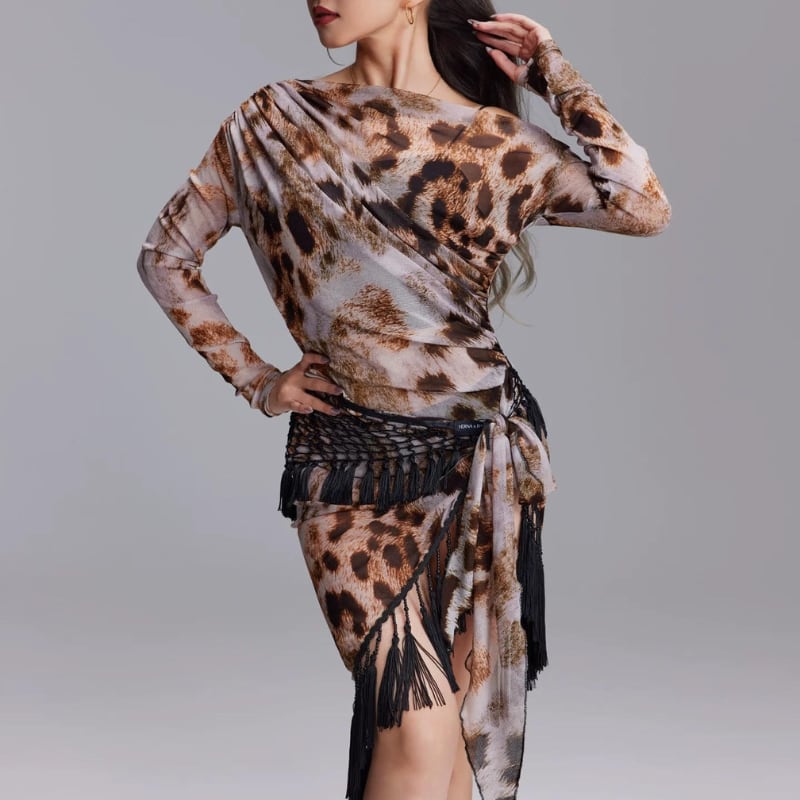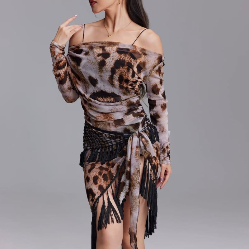 カウルネックドレープ レオパード トップス 1col D00619