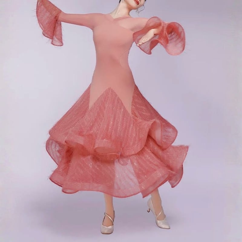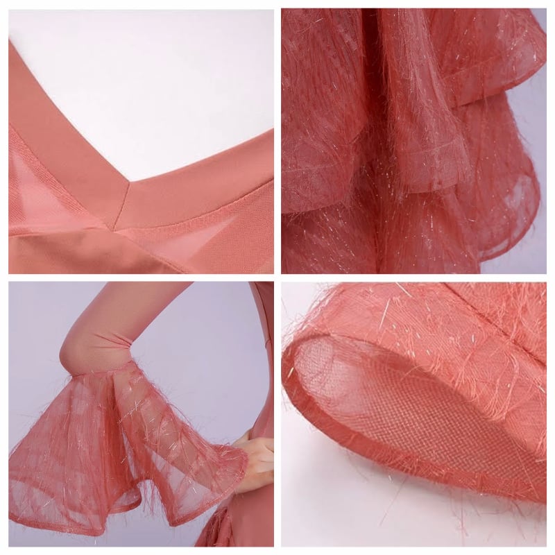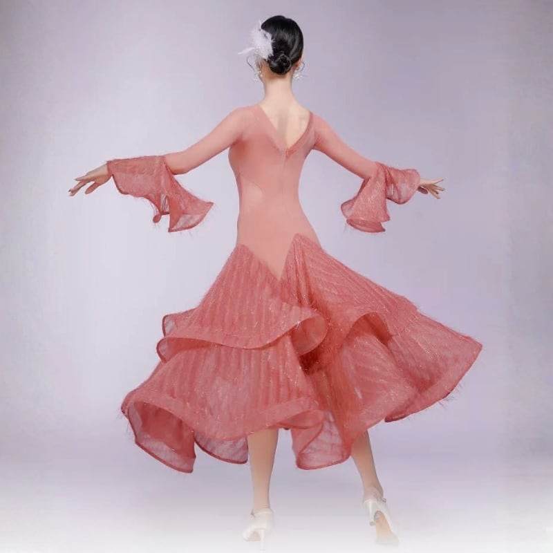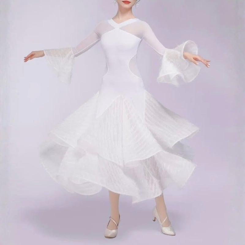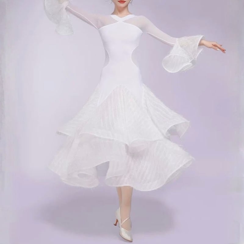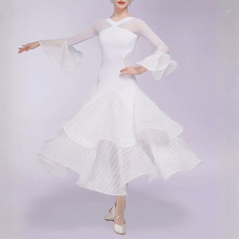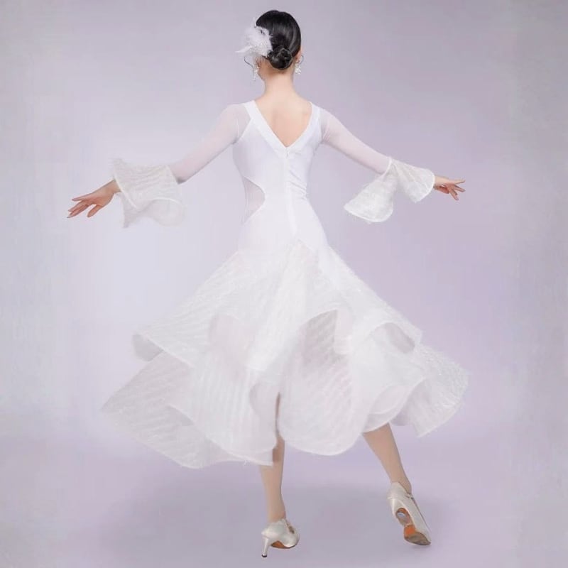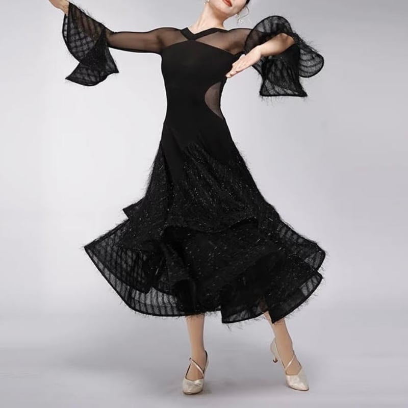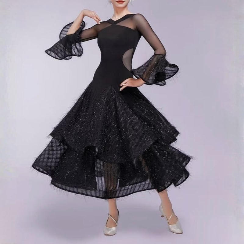 ティアードフレア ベルスリーブ モダン ダンスドレス 3col D00621