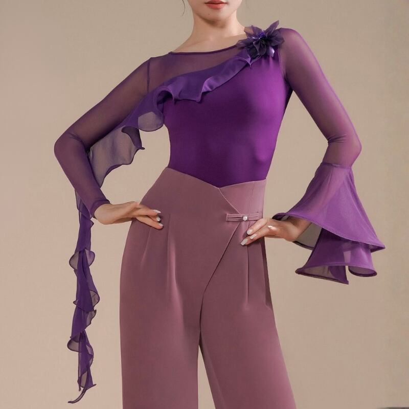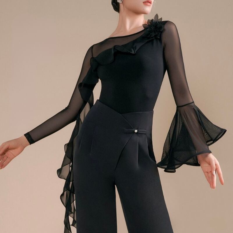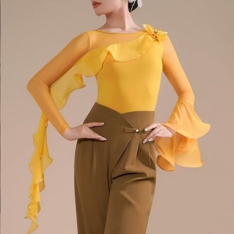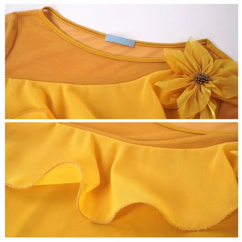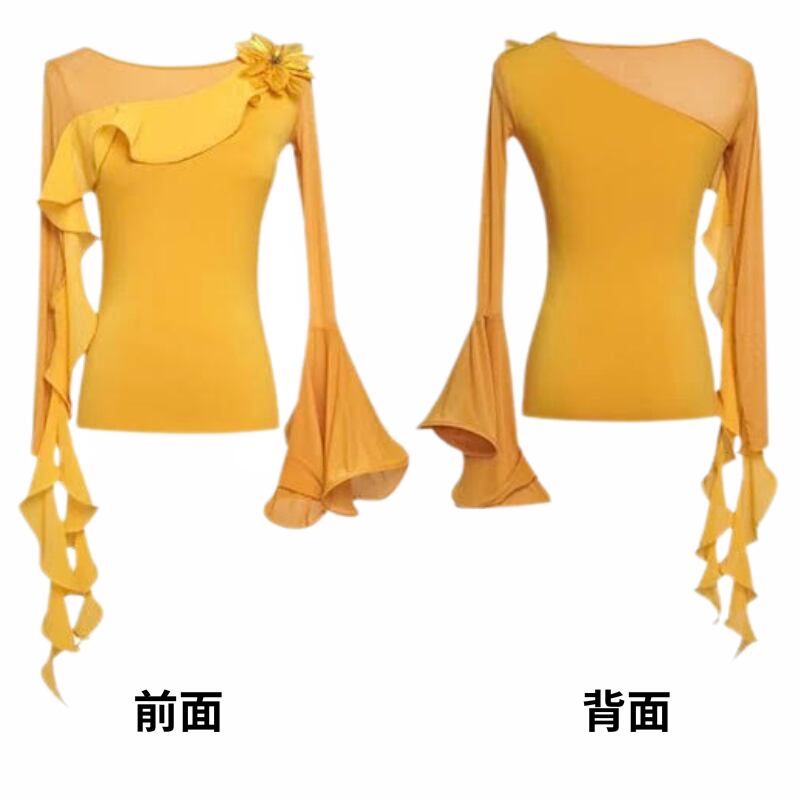 フリルネック アシンメトリー メッシュ ダンストップス 3col D00632