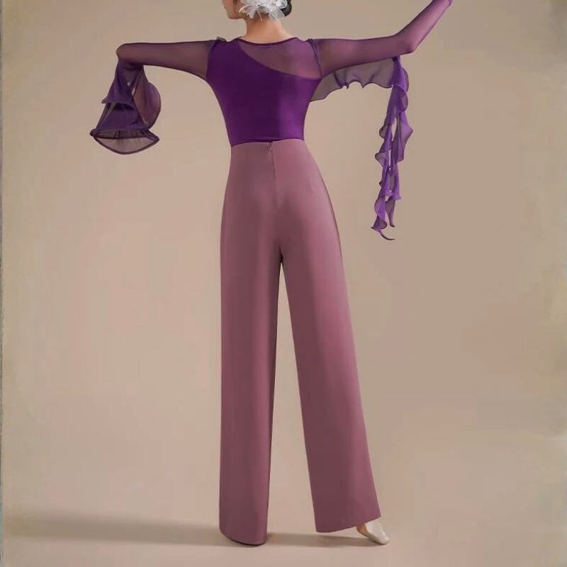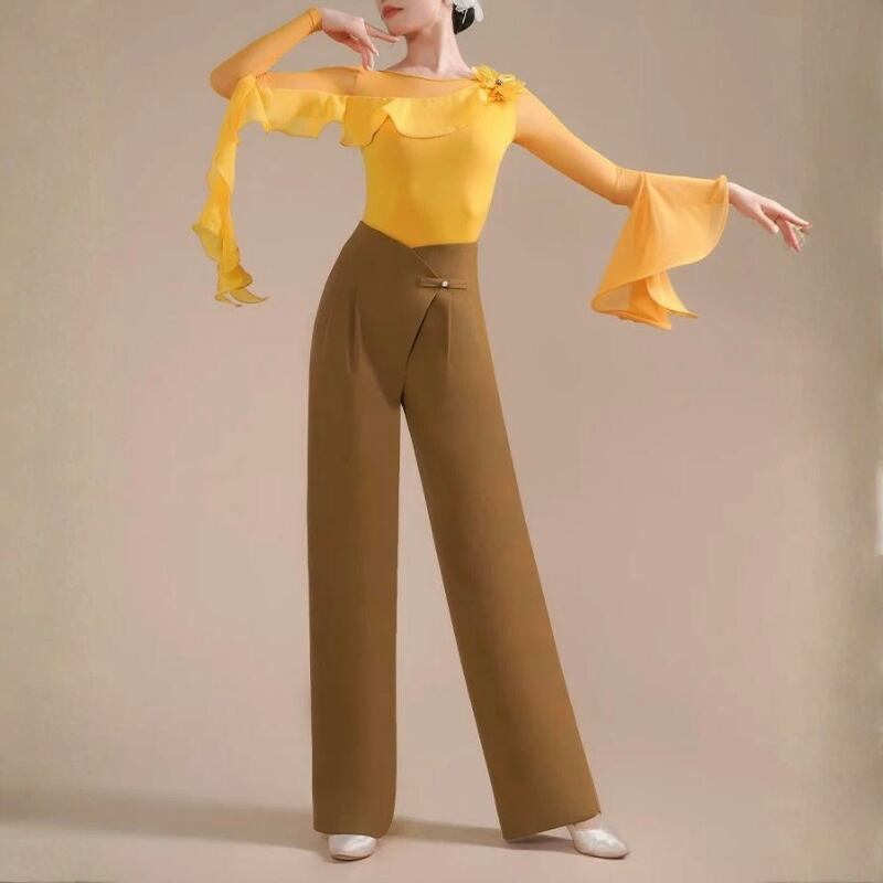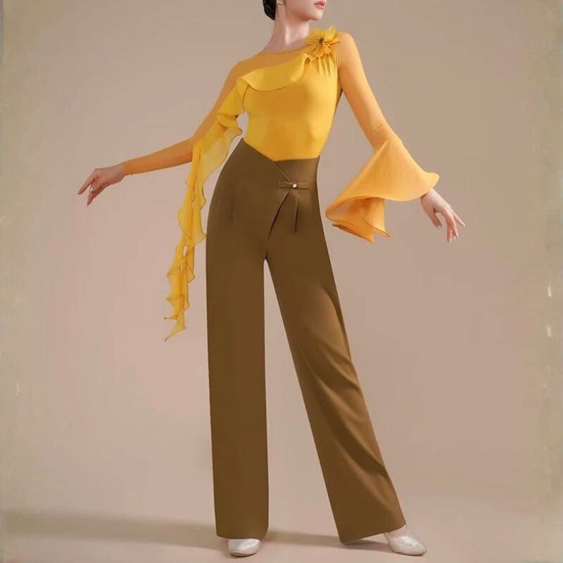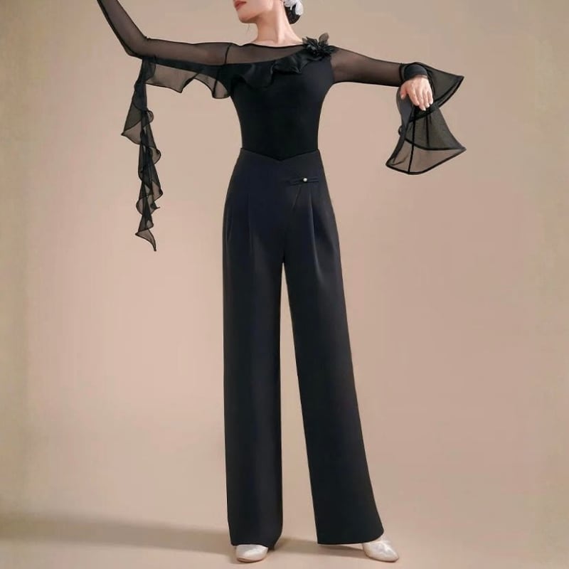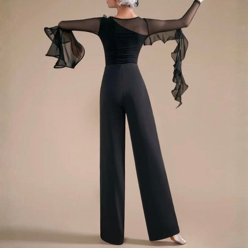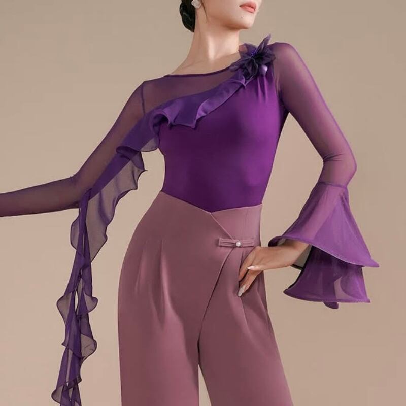 フリルネック アシンメトリー メッシュ ダンストップス 3col D00632
