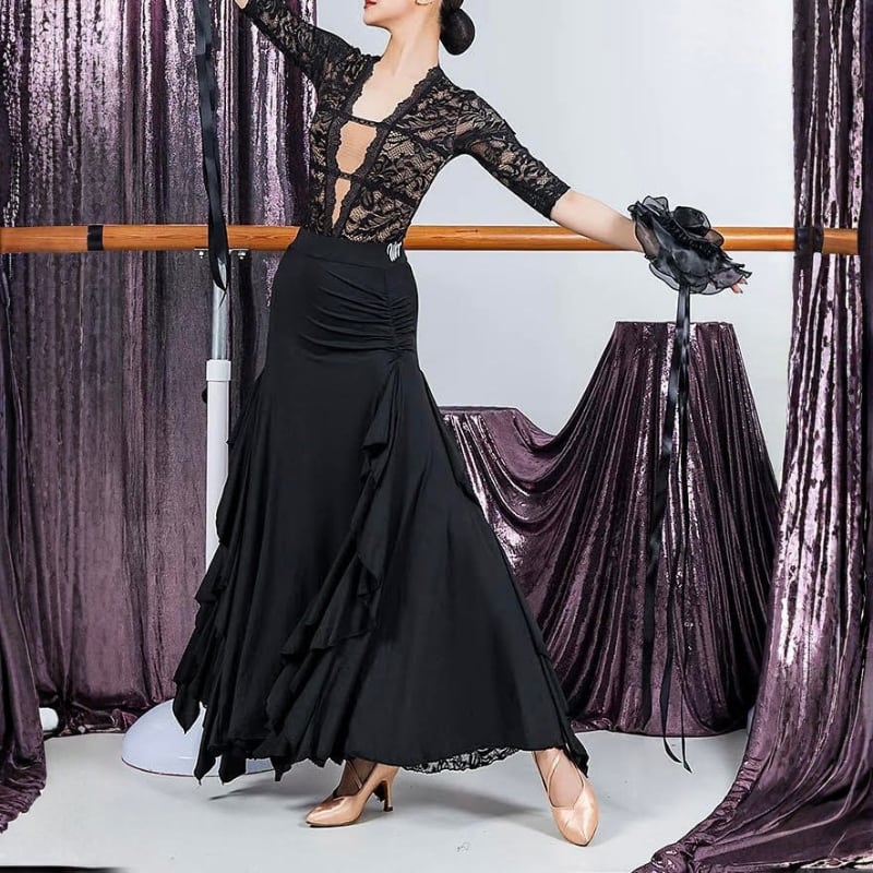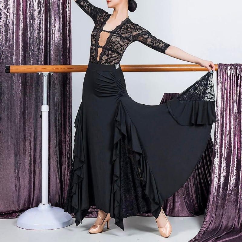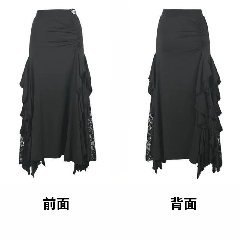 ドレープ フリル レース ミモレ丈 フレアスカート 1col D00637