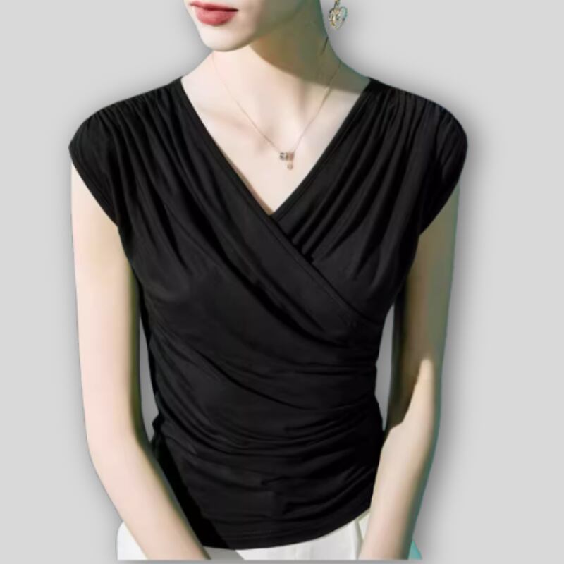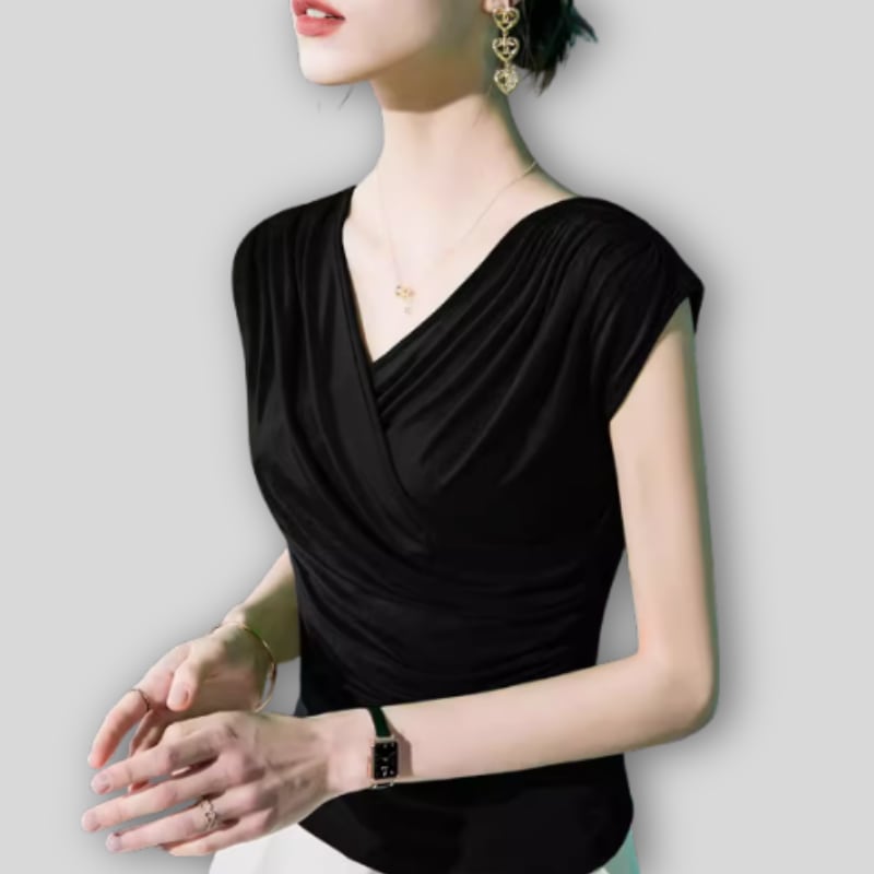 カシュクールデザインが特徴のドレープトップス。