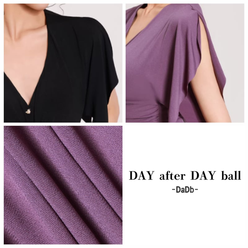 ドレープギャザー Vネック フレンチスリーブ スリット ドレス 2col D00656