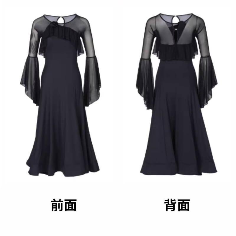 シフォンケープ ロングベルスリーブ ドレープ ドレス 2col D00661